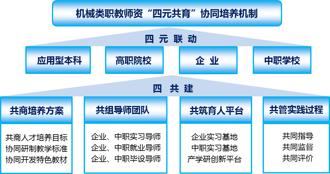 “四元共育”协同培养机制为高职本科衔接协同培养职教师资开辟了新途径,破解了本科与高职、中职和企业多主体协同育人机制不顺畅的难题。